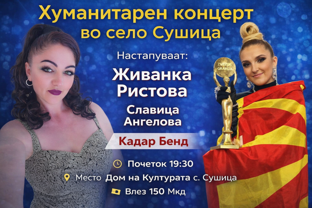 Концертот ќе се одржи во Домот на културата во с. Сушица. За одличната атмосфера и незаборавната вечер ќе се погрижат: